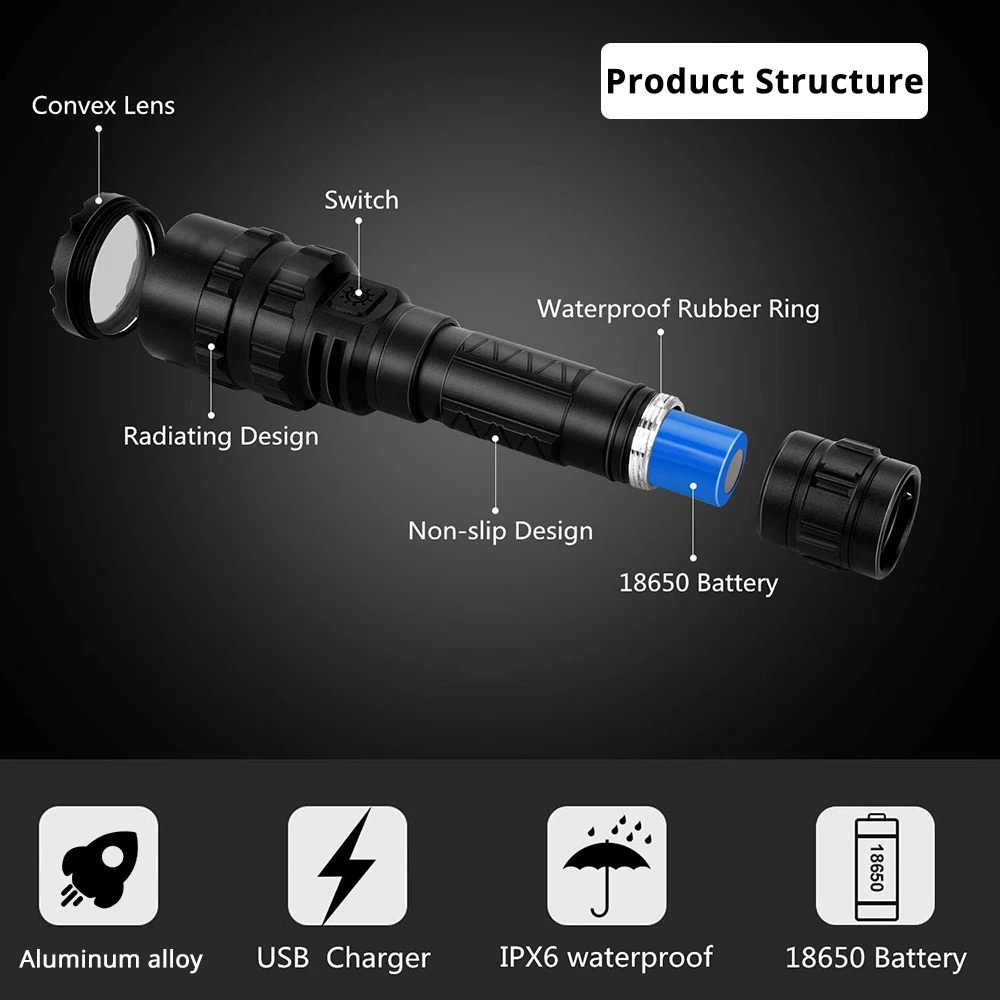 If You search information Super bright waterproof LED Flashlight 5 lighting modes Aluminum alloy Torch Powered by 18650 batte is possible make you like